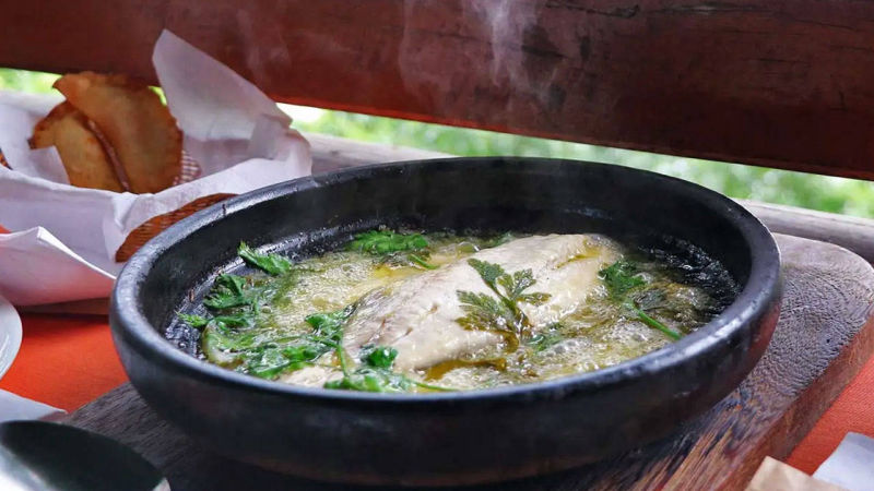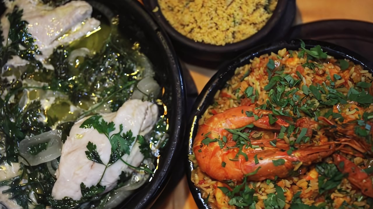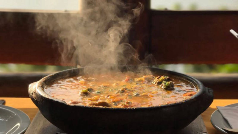 Com frutos do mar e panelas de barro, uma receita à moda.